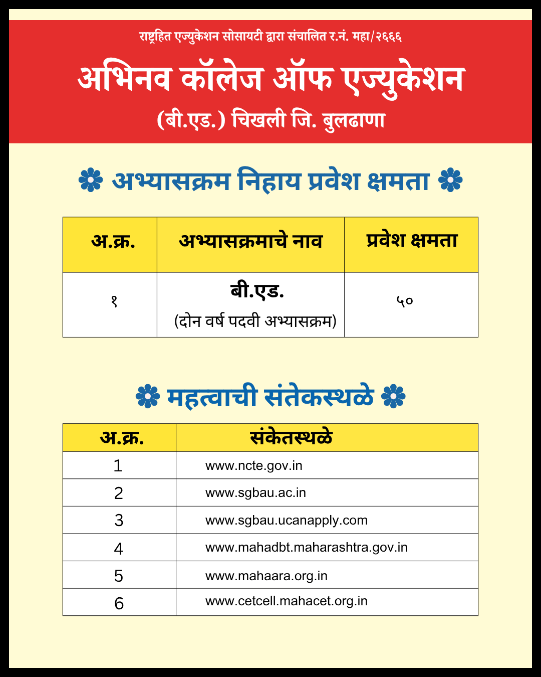 Whether you are looking for B.Ed admission in Buldhana or seeking the top teacher education center near Chikhali, Abhinav College provides the ideal environment for academic growth and professional success.